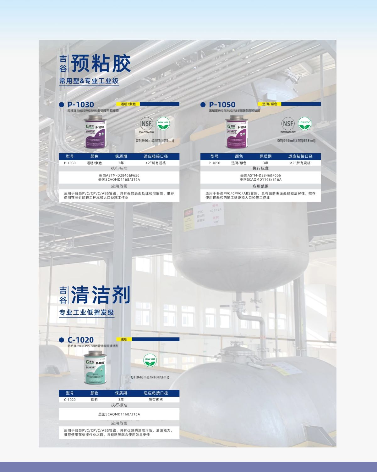 預粘膠有良好的清潔軟化粘接表(biǎo)麵,使得膠(jiāo)水更容易滲透粘(zhān)接表麵,達到粘接最(zuì)大強度。低揮發低揮發LovVOC環保級。應用在民(mín)用或工業PVC/CPVC/ABS管道粘接口清潔軟化,施工環境和天氣苛刻(kè)條(tiáo)件時,特別(bié)是(shì)大口徑裝配,可降低粘接難度。